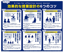 教員の授業設計に役立つティップスやヒント集を掲載したカレンダー。愛媛大学の学年暦や研修プログラム日程、イベントなど授業改善や教職員の能力開発に関する情報を掲載している。2013年度から2017年度までに発行したFDカレンダーは、「学習動機を高める6つのコツ」「効果的な授業設計の6つのコツ」「自立した学習者が育つ授業設計の5つのコツ」がある。ご覧になりたい方は、ここをクリック。 - 授業ティップス