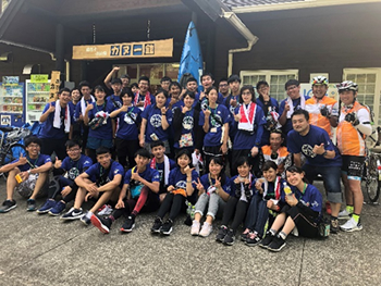 プロジェクトには愛媛大学生11名、本学協定校の台湾・高雄科技大学生15名の計26名が参加し、それぞれ4チームに分かれて「しまなみ海道」を自転車で走りました。走行ルートを各チームの日台学生が協働して決定し、単にサイクリングを楽しむだけではなく、村上水軍博物館や大山祗神社といった歴史・文化施設の訪問や、地産品の食事体験を行うなど、各グループにおいて活発な交流が見られました。